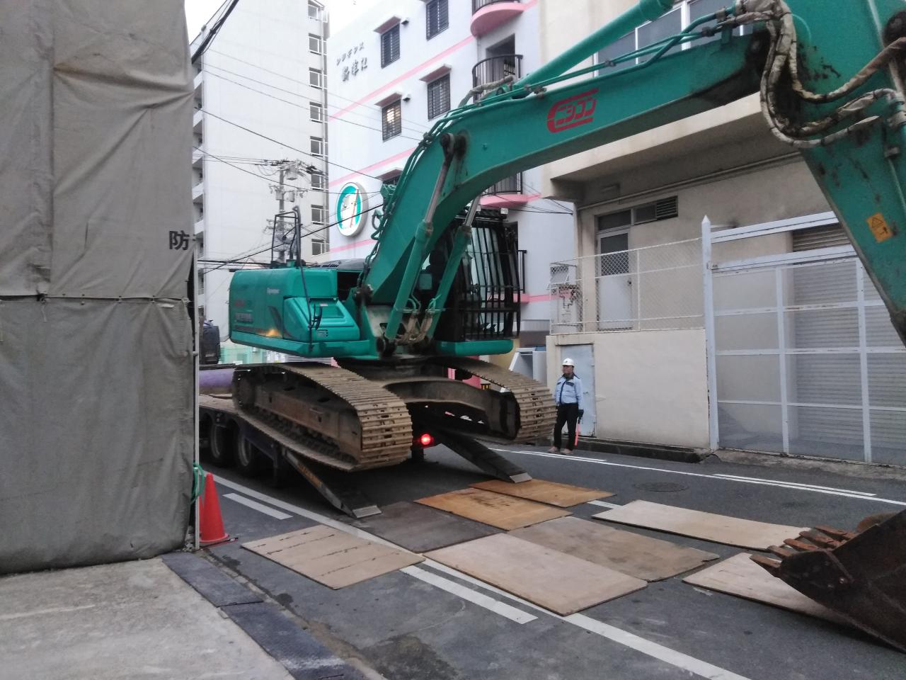 東成区階上解体も大きな重機に
