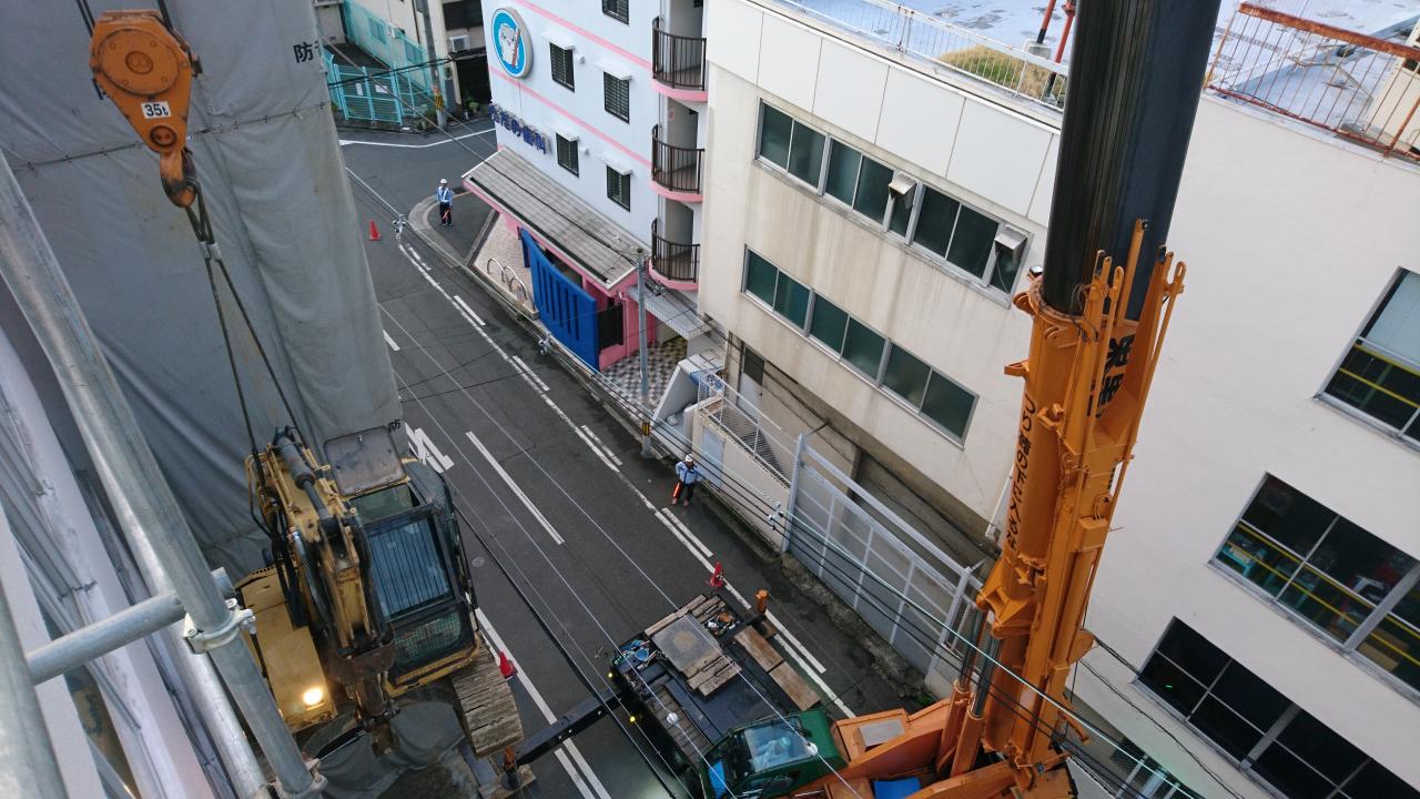 早朝の重機搬入!