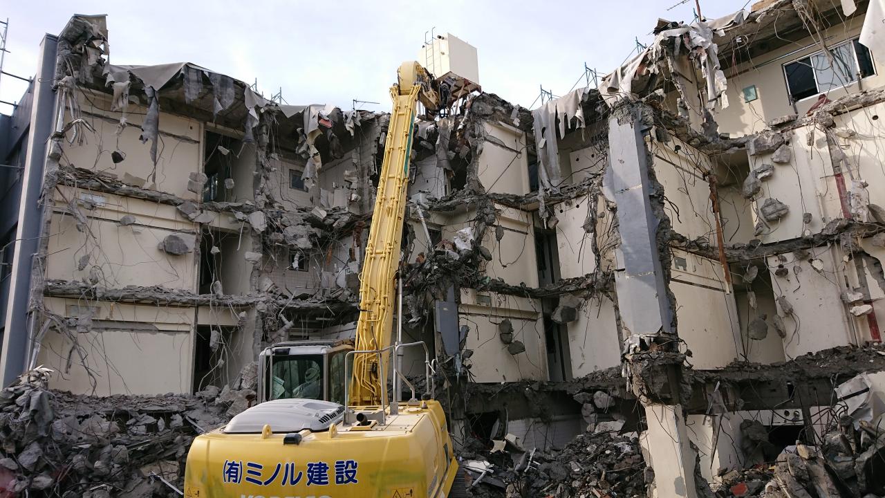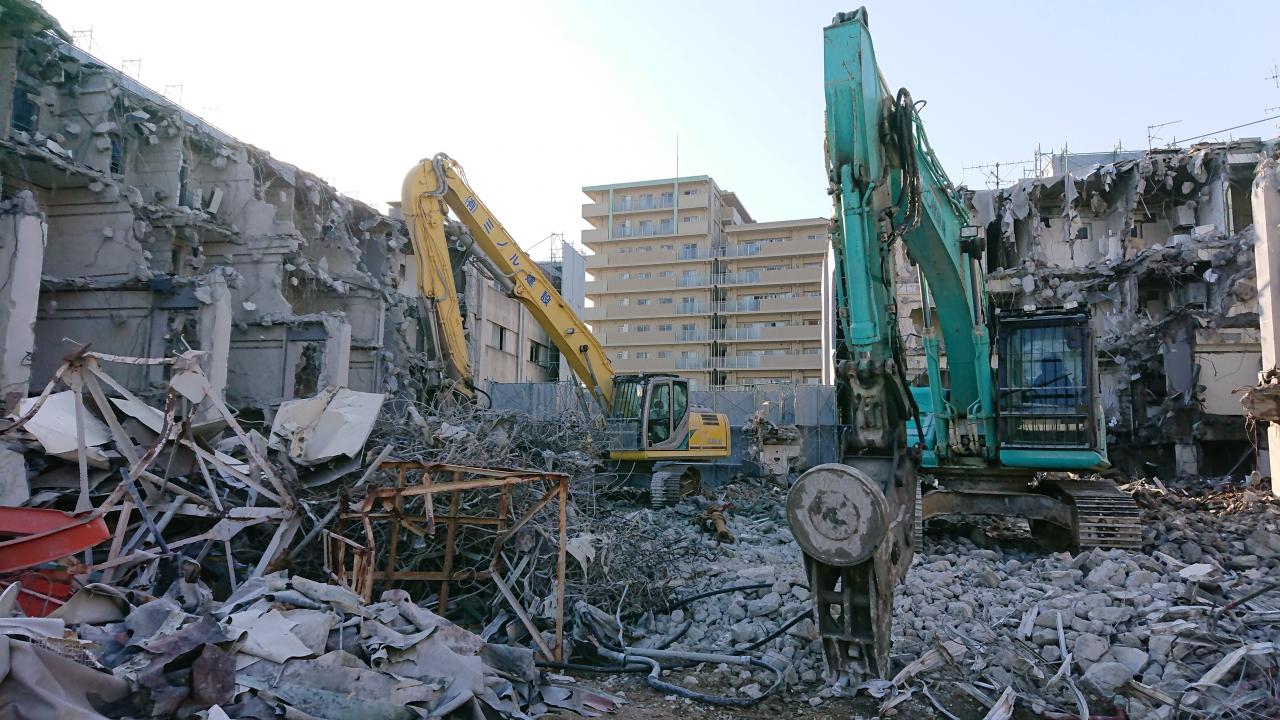 建物を解体して敷地内を広くしていく作業を冨吉君とコンビで